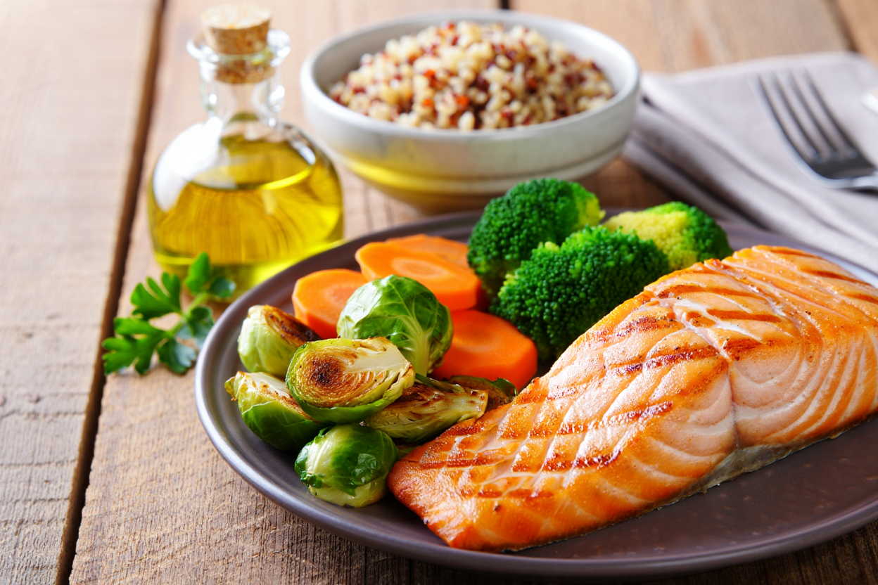 - Des protéines variées mais modérées (poissons, légumineuses, œufs).